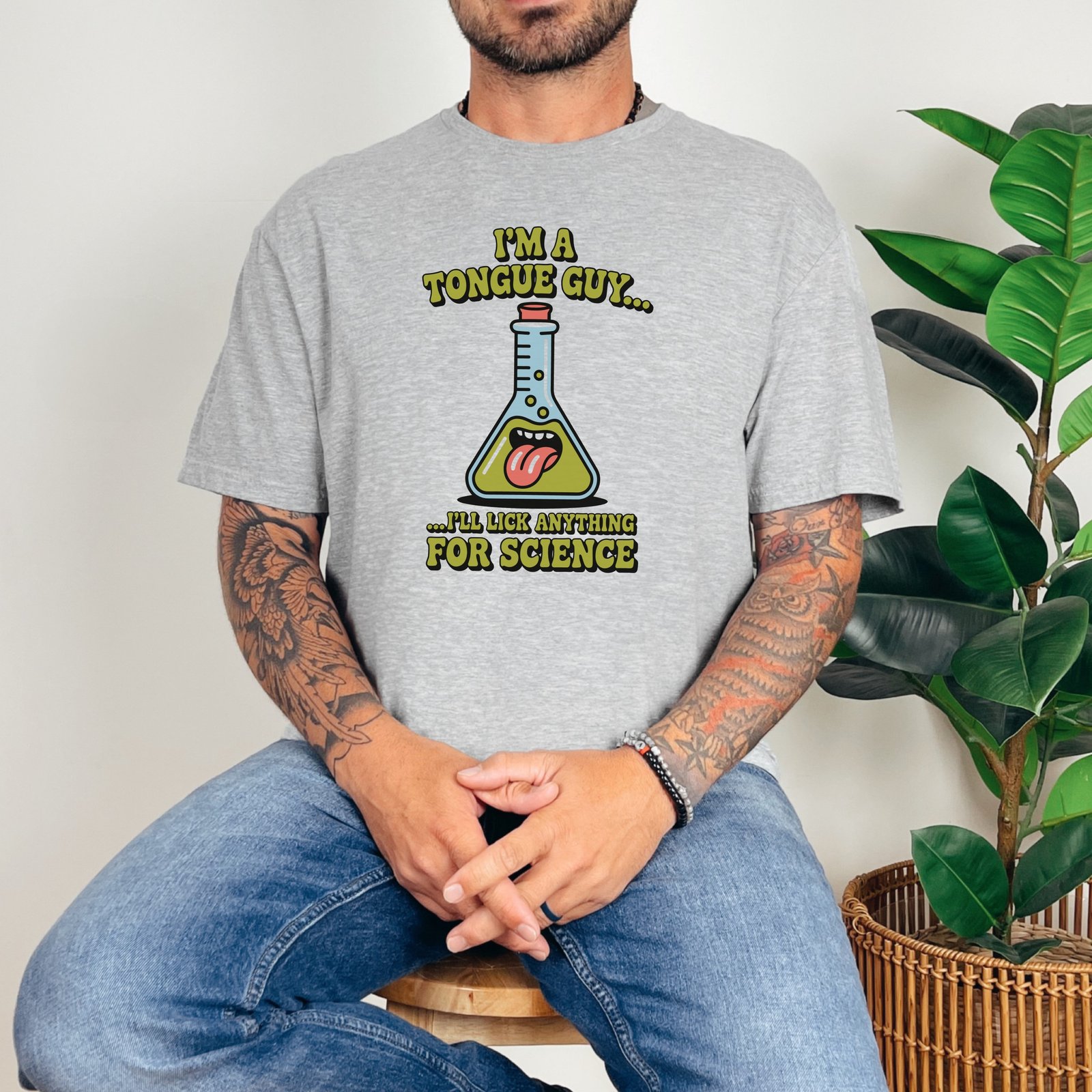 Show off your love for pleasure with this funny “I’m a Tongue Guy” T-Shirt. The design features an Erlenmeyer flask with a tongue sticking out. Perfect gift for any scientist.