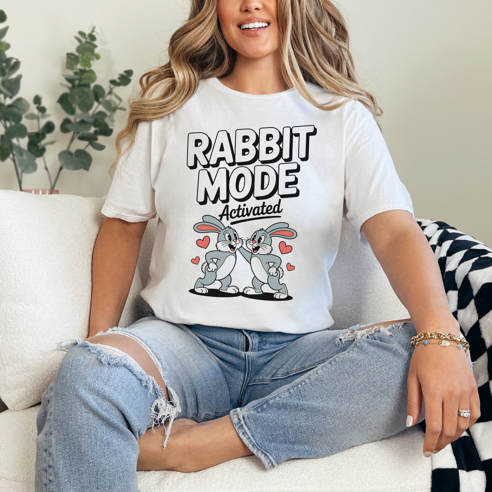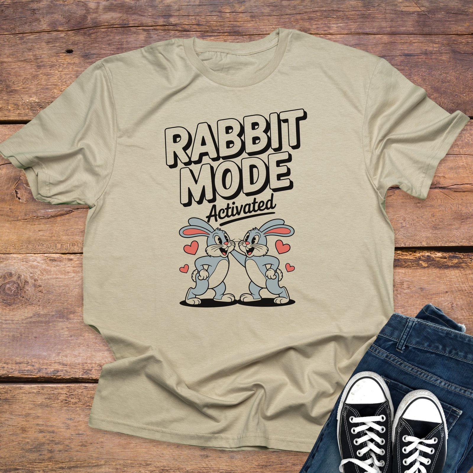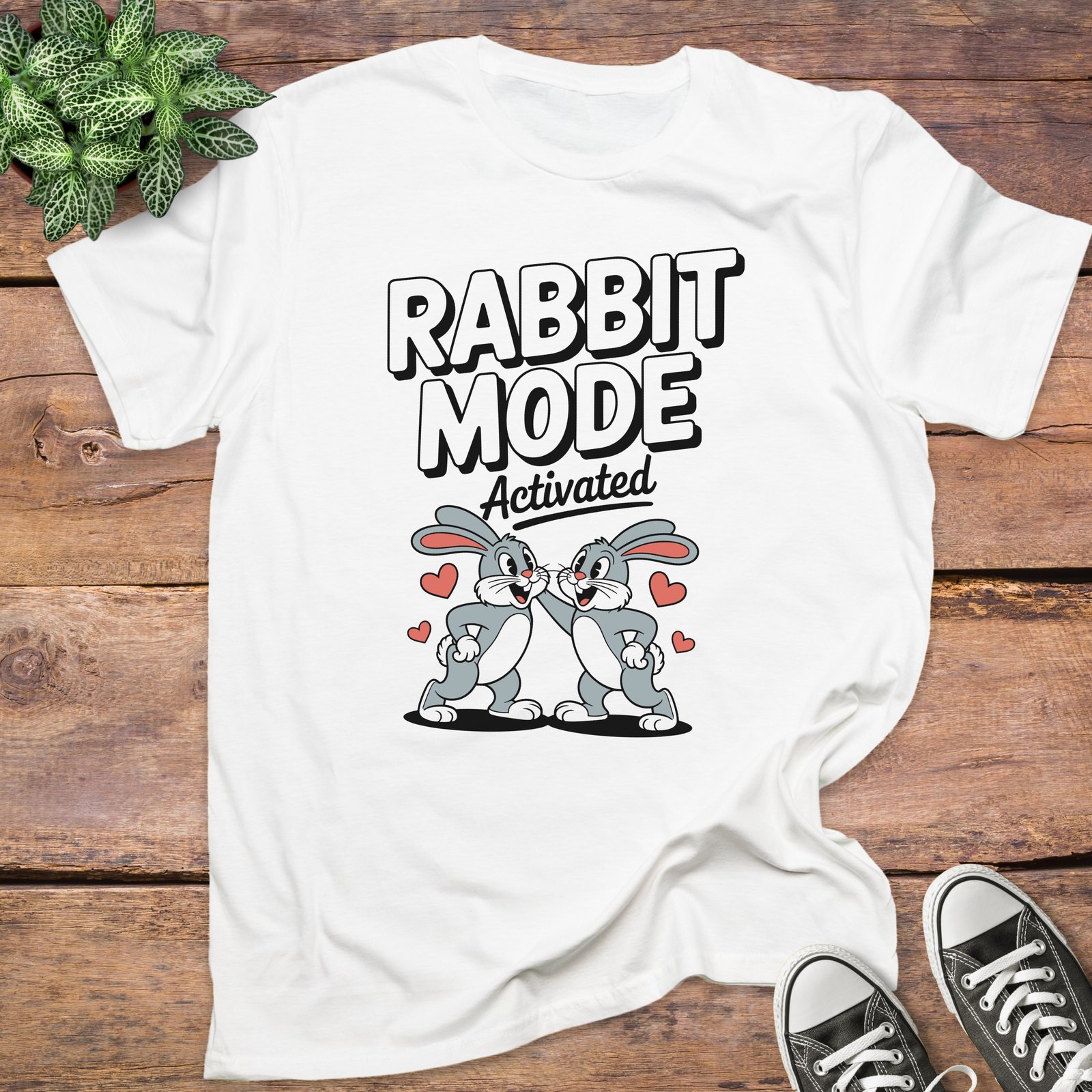 Show off your love for love making with this adorable “Rabbit Mode Activated” T-shirt! Featuring two bunnies and hearts. A must have for all lovers. Get yours today!